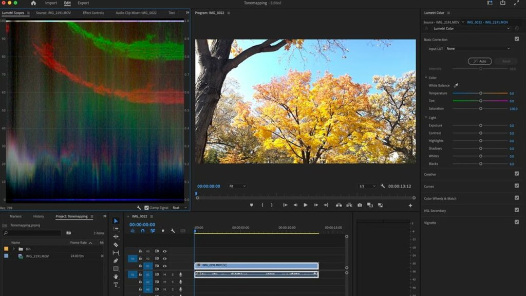 Kromě aktualizovaného nástroje pro převod řeči na text získala Premiere také nové automatické mapování tónů. Tento nástroj pomáhá zjednodušit pracovní postupy a zachovat konzistentní barvy v sekvenci bez ohledu na média fotoaparátu a barevné prostory.