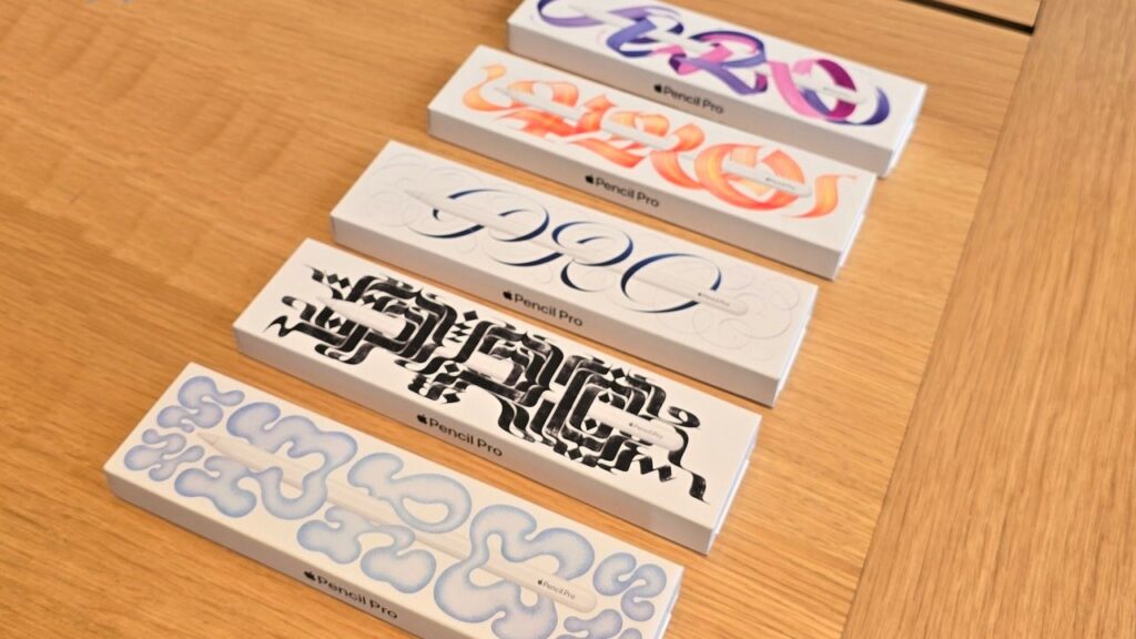 Pokud nepožádáte o konkrétní krabici nebo je dotyčný Apple Store zabalený, kupující v obchodě nebudou vědět, jaký design krabice Apple Pencil Pro dostanou. Bylo nám však řečeno, že pokud je obchod relativně pomalý, může kupující požádat o konkrétní design, pokud je skladem. Jinak se mi zdá kruté zobrazovat všech pět.