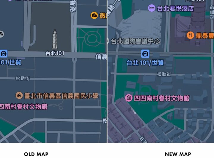 Obrázek Apple Maps Taipei, Taiwan. Zdroj obrázku: Justin O’Beirne Veřejné testování přepracovaných Apple Maps pro Tchaj-wan začalo,...