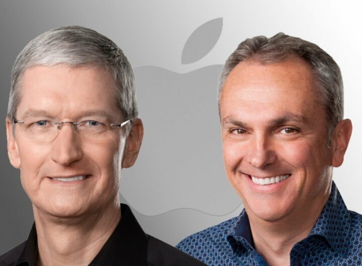 CEO společnosti Apple Tim Cook (vlevo) s finančním ředitelem Lucou Maestri