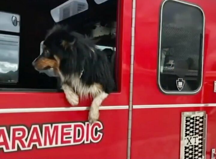 Seamus po svém utrpení. (Zdroj: ABC 7, San Bernardino County Fire Při povodních v San Bernardinu byl...