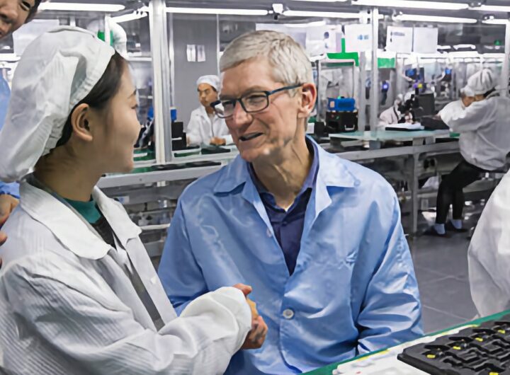 Tim Cook navštíví továrnu Luxshare v roce 2017. Zdroj: Apple