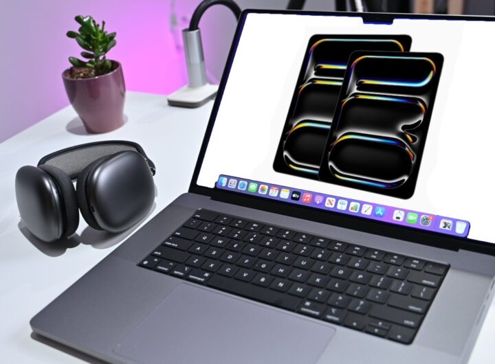 Nový iPad Pro překrytý na obrazovce MacBooku Pro Po recenzích, které říkají, že omezení iPadOS znamenají, že...