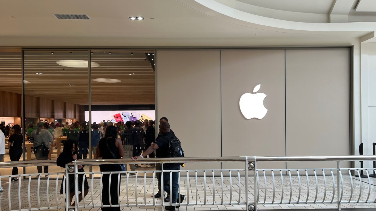 Jasné logo Apple u vchodu do Apple Tysons Corner Tysons Corner byl místem, kde byl otevřen úplně...