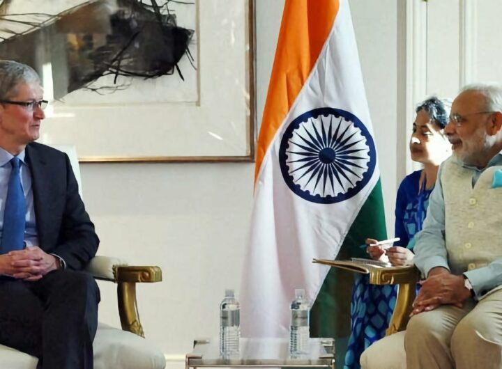 Tim Cook (vlevo) a premiér Narendra Modi na dřívější schůzce Vzhledem k tomu, že CEO Applu Tim...