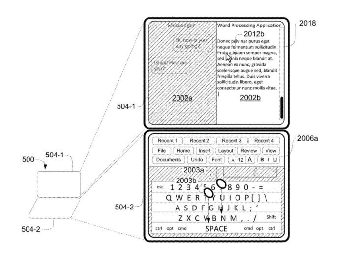 Skládací zařízení by mohlo mít dvě obrazovky, kde spodní funguje jako „softklávesnice“ Skládací zařízení se dvěma obrazovkami...