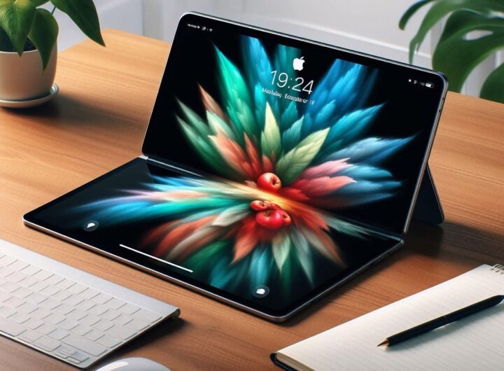 Vygenerovaný obrázek konceptu skládacího MacBooku Po letech zvěstí se skládací MacBook od Applu na celé obrazovce možná...