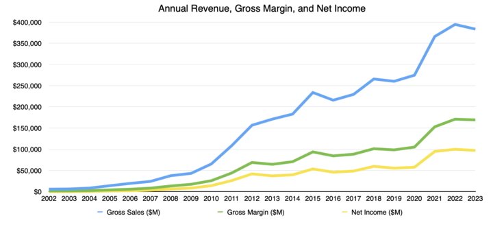 Čisté tržby podle kategorií vykázaly růst pouze v jednom segmentu: Služby. Jinak Apple zaznamenal meziročně nižší čisté prodeje ve všech kategoriích: iPhone, Mac, iPad a nositelná zařízení, domácnost a příslušenství.