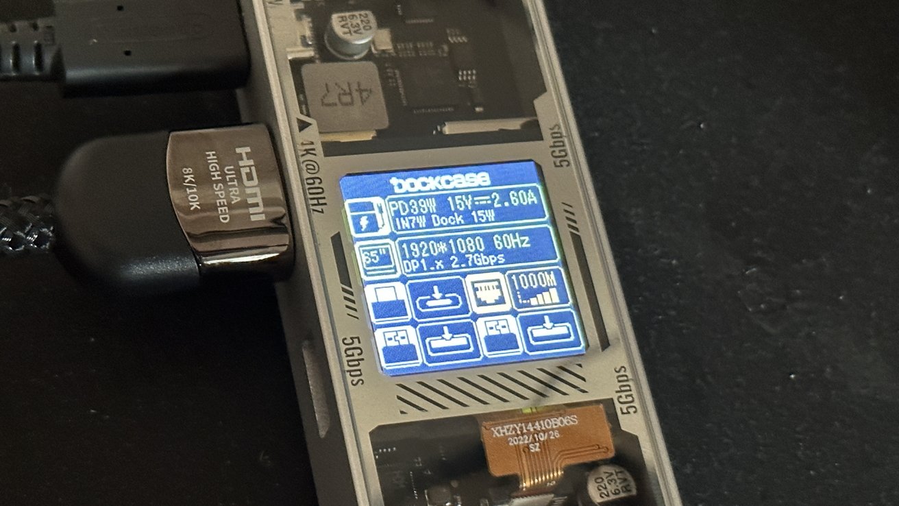 LCD je samozřejmě to, co dělá Dockcase skutečně výjimečným. Přepínání mezi HDMI, napájením, detaily zařízení a dalšími konfiguracemi pomocí jediného tlačítka je zvláště jedinečné pro uživatele, kteří chtějí znát konkrétní statistiky svého nastavení.
