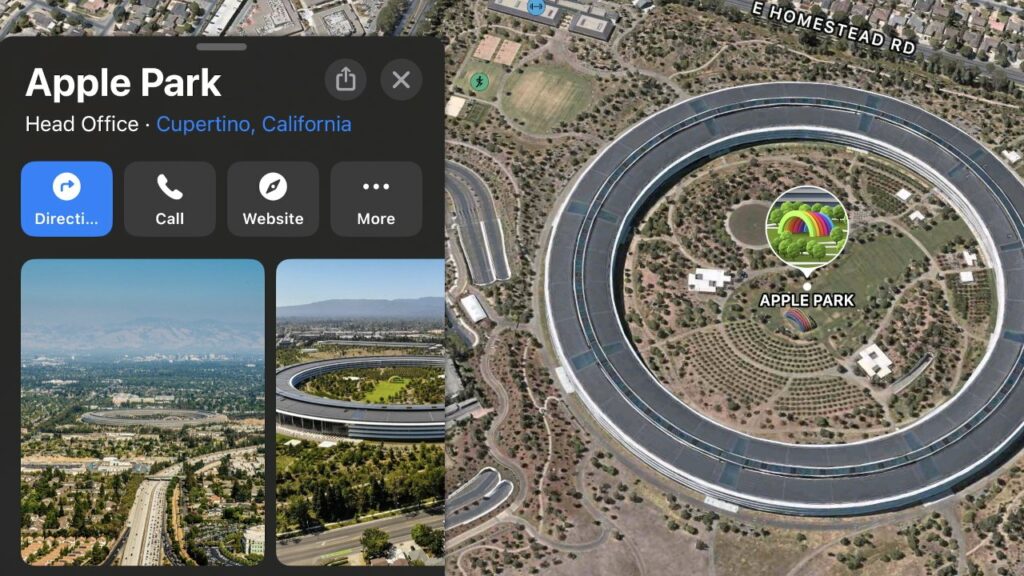 Apple Park, jak je znázorněno na Apple Maps.