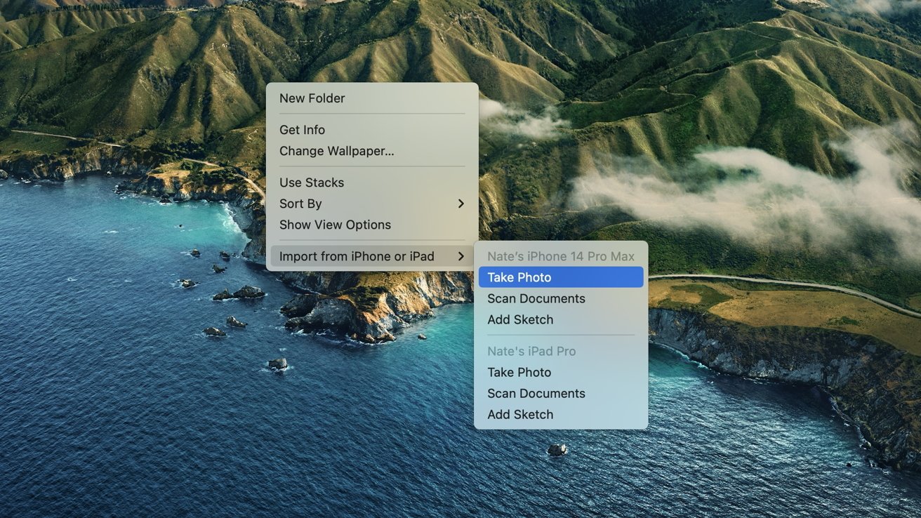 Continuity Camera funguje hladce a bezdrátově mezi vaším iPhonem nebo iPadem a Macem, když chcete vkládat fotografie a/nebo skenovat dokumenty. Systém zadní kamery iPhonu můžete také použít jako alternativu k webové kameře vašeho Macu během videohovorů.
