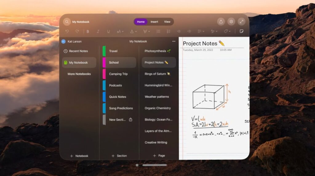 Word a Excel byly k dispozici na Apple Vision Pro při uvedení na trh, ale nyní Microsoft rozšiřuje své aplikace o dřívější než očekávanou verzi své aplikace pro psaní poznámek OneNote.