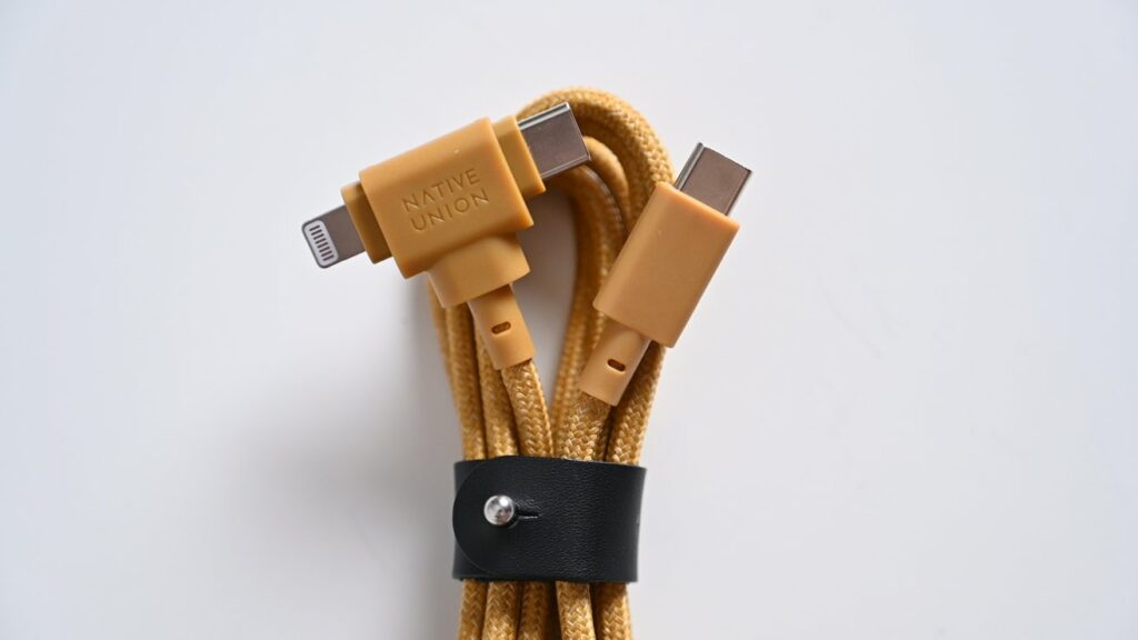 Belt Cable Duo – jak se oficiálně nazývá – dodržuje pravidla společnosti Apple, protože nepoužívá adaptér. Na jednom konci je konektor USB-C a na druhém konektor ve tvaru „T“ s Lightning i USB-C.
