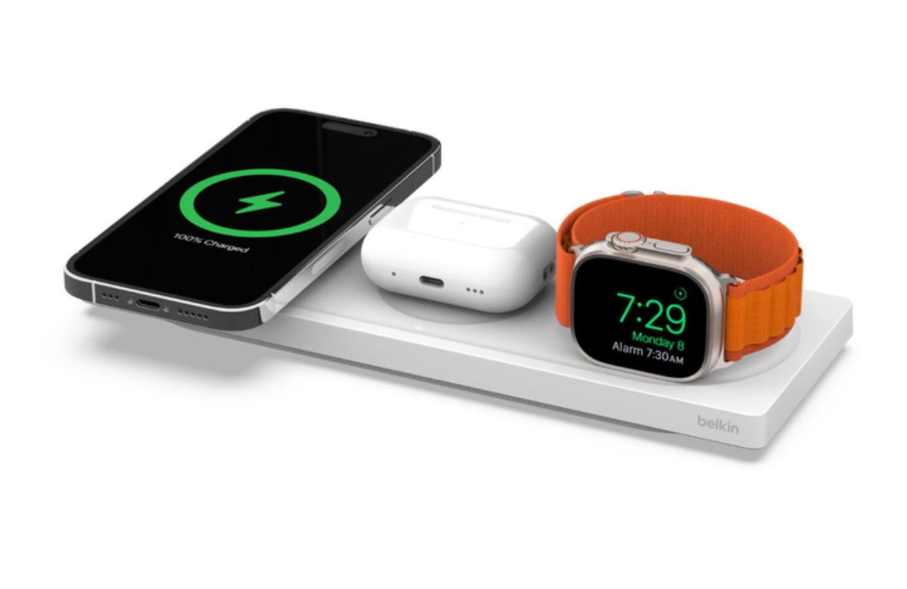 Bezdrátová nabíjecí podložka Belkin BoostCharge Pro 3 v 1 je navržena jako jednorázové nabíjecí řešení pro uživatele Apple. Obsahuje oficiální technologii MagSafe, která poskytuje až 15W rychlé bezdrátové nabíjení pro Apple Watch, iPhone a AirPods.