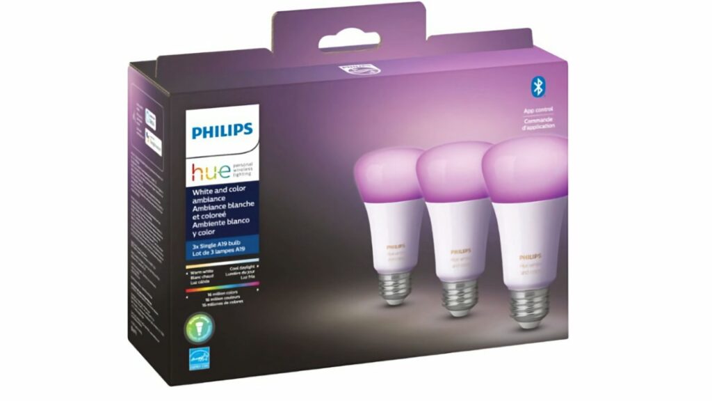 - Chytré žárovky LED Philips Hue White & Color Ambiance A19 Bluetooth LED (3 balení) – vícebarevné nyní 89,99 $ (sleva 45 $)