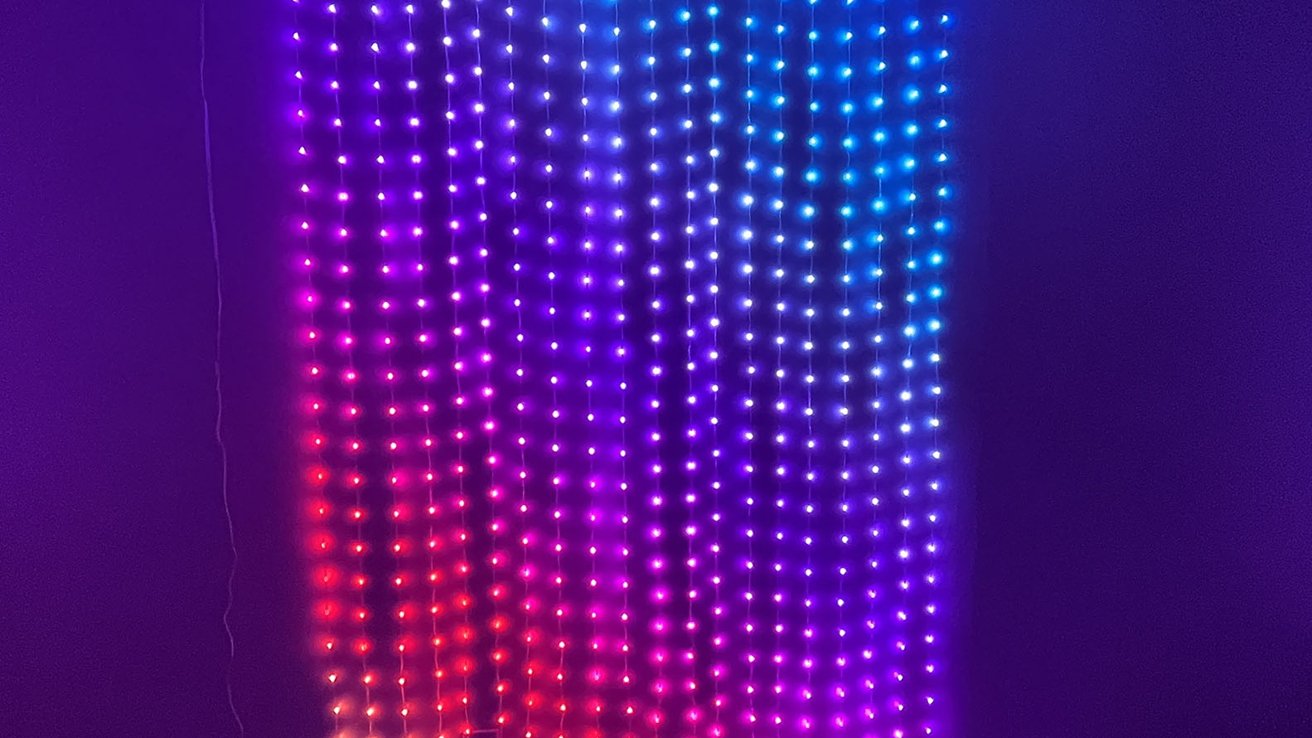 Svítidla Govee Curtain Lights měří 5 stop na šířku a 6,5 stop na výšku a jsou navržena k zavěšení na zeď nebo okno. Obsahuje 520 jednotlivých světel RGBIC, které lze ovládat pomocí aplikace Govee.
