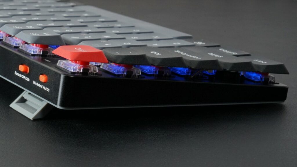 Stejně jako ostatní klávesnice Keychron má více režimů použití. Přepínač na straně ovládá, zda je v režimu Windows nebo Apple, a další přepínač přepíná mezi kabelovým režimem a režimem Bluetooth.