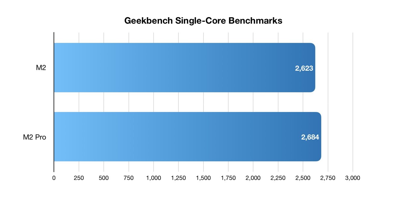 Vaše průměrné úkoly budou všechny jednojádrové. Otevírání aplikací, čtení e-mailů, zasílání zpráv, procházení online a psaní jsou všechny jednoduché úkoly, které pravděpodobně děláte každý den. A M2 vám poskytne stejný výkon jako M2 Pro a M2 Max.