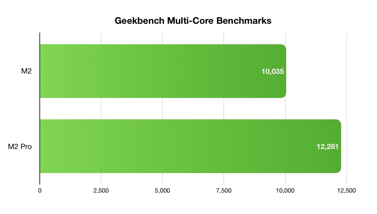 S vícejádrem je M2 Pro pochopitelně více. V tomto případě porovnáváte 12jádrový čip s 10jádrovým MacBookem Air.