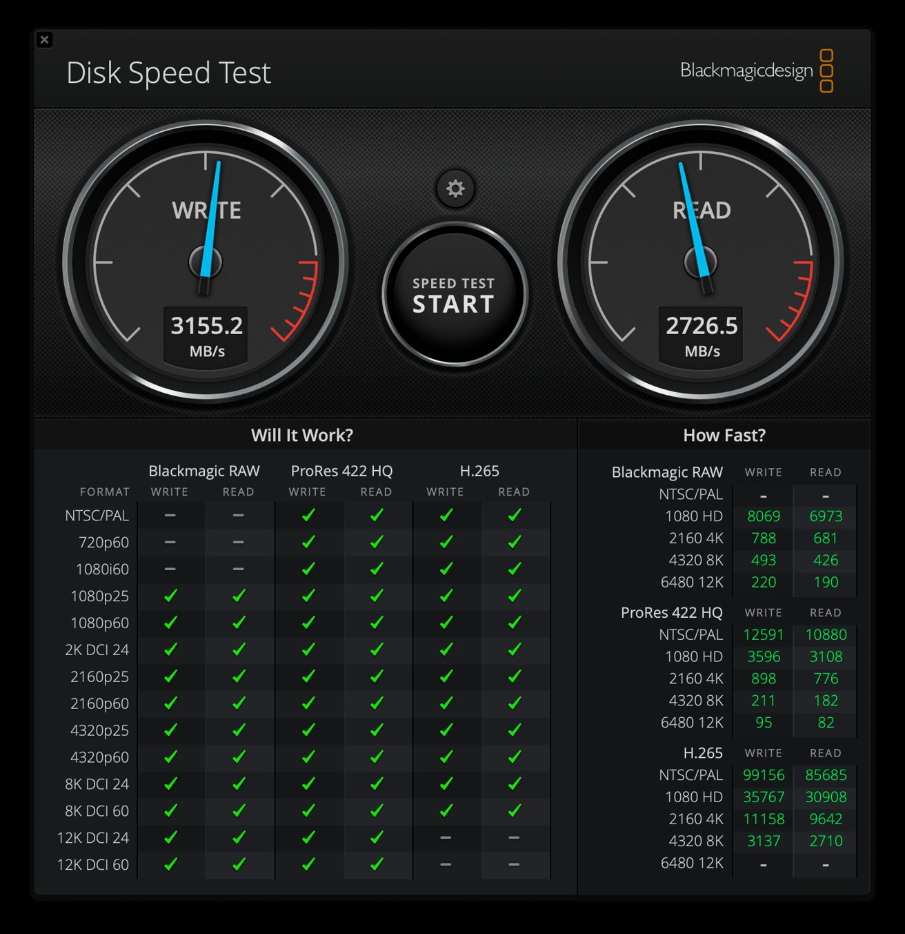 Námi testovaná kapacita 512 GB zapisovala rychlostí asi 3100 megabajtů za sekundu a četla rychlostí asi 2800 megabajtů za sekundu. 256GB verze má v podstatě symetrickou rychlost čtení a zápisu 1450 megabajtů za sekundu.