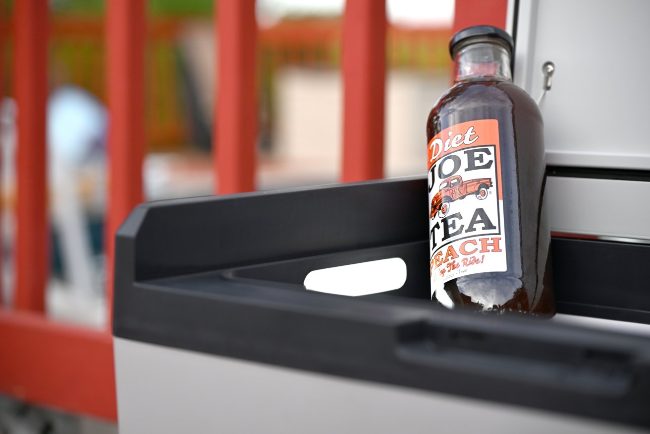 Uvnitř je velká primární přihrádka se sekundární boční přihrádkou. Snadno se nám vešlo 12 balení piva, tři 32decová piva, velký čaj a láhev cheerwine – a stále jsme měli místa nazbyt.
