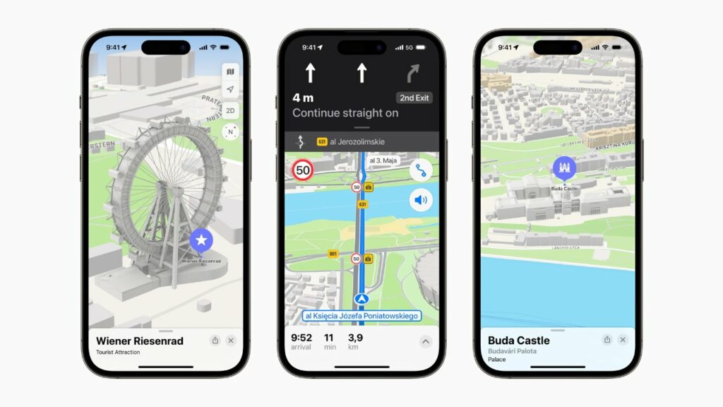 Oznámení Applu vyzdvihuje „trojrozměrné orientační body, jako je Wiener Riesenrad v Rakousku, Pula Arena v Chorvatsku a Budínský hrad v Maďarsku“, díky čemuž je „snazší a příjemnější mapovat jakoukoli cestu“.