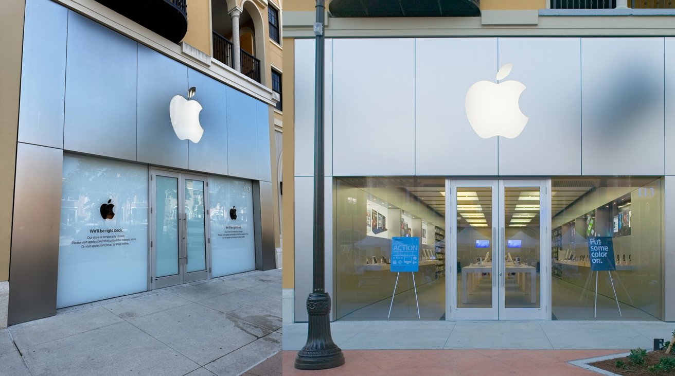 Renovace Coconut Point Apple Store [left, Jacob Eberhart]a fotka záznamu v obchodu Apple [right]