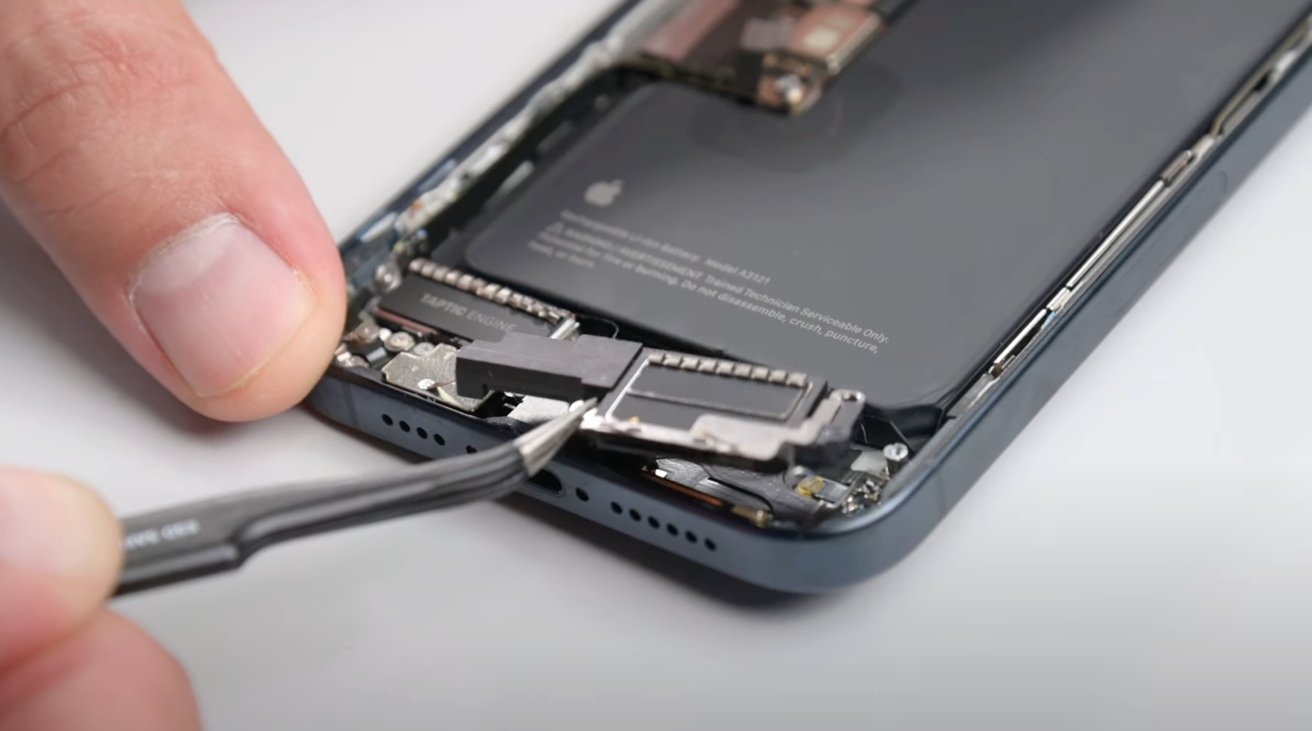 Trhací video rozebírá iPhone 15 Pro Max celkem systematicky, se šrouby pentalobe a nutností přísavky blokující vyjmutí displeje. Jakmile jsou uvnitř, pokusy o vyjmutí baterie jsou zmařeny vadnými jazýčky, což vyvolalo stížnosti na odstranění dalších deseti šroubů.