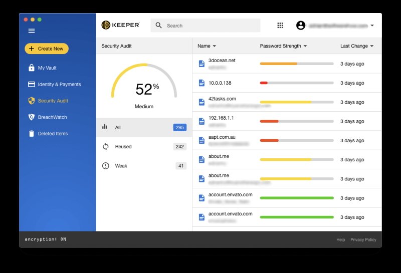Klíčenka obsahuje některé funkce zdarma, které vyžadují placené předplatné na jiných správcích hesel. Klíčenka vám dá vědět, zda byla vaše hesla prozrazena nebo znovu použita.