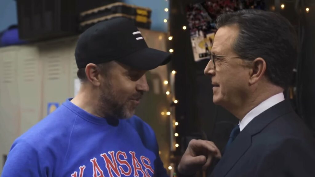 Obsazení hitu Apple TV+ „Ted Lasso“ se zastavilo v „The Late Show with Stephen Colbert“, aby nabídlo nějaké povzbuzení, které moderátorovi pomůže setřást jeho blues před vystoupením.